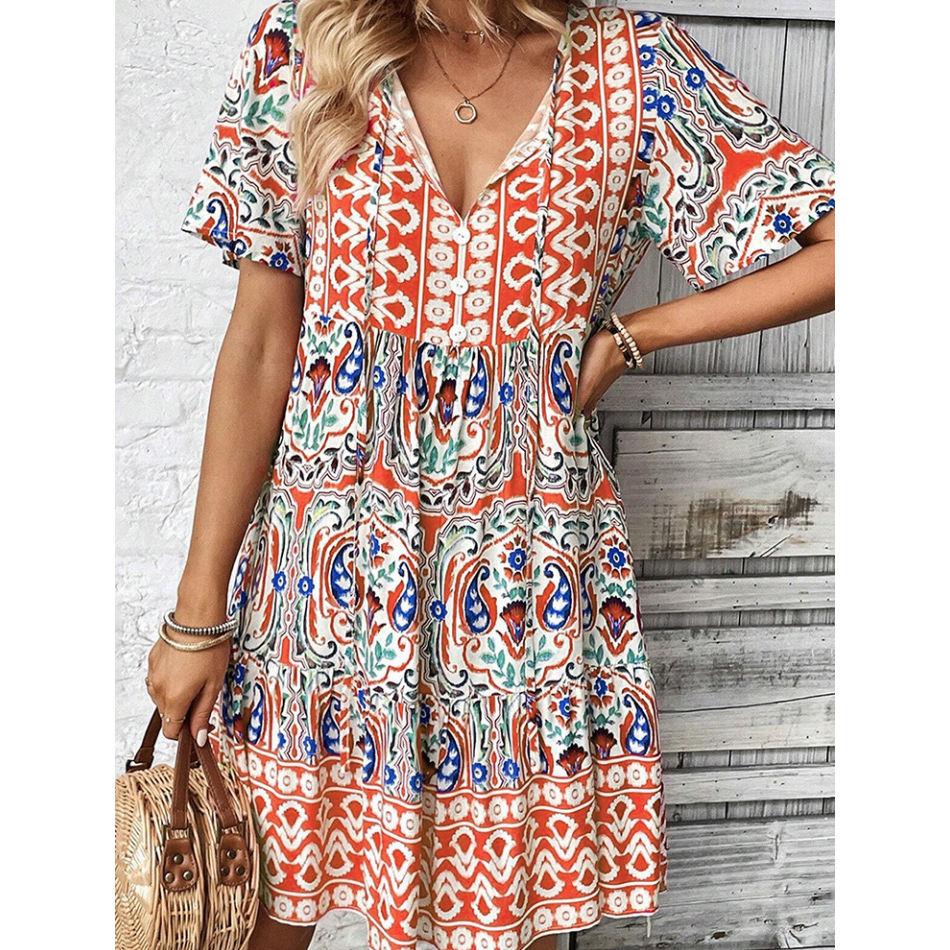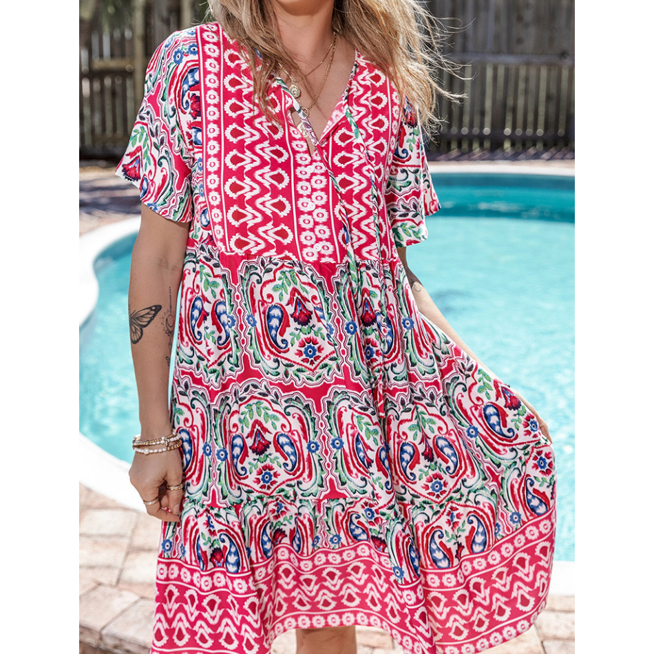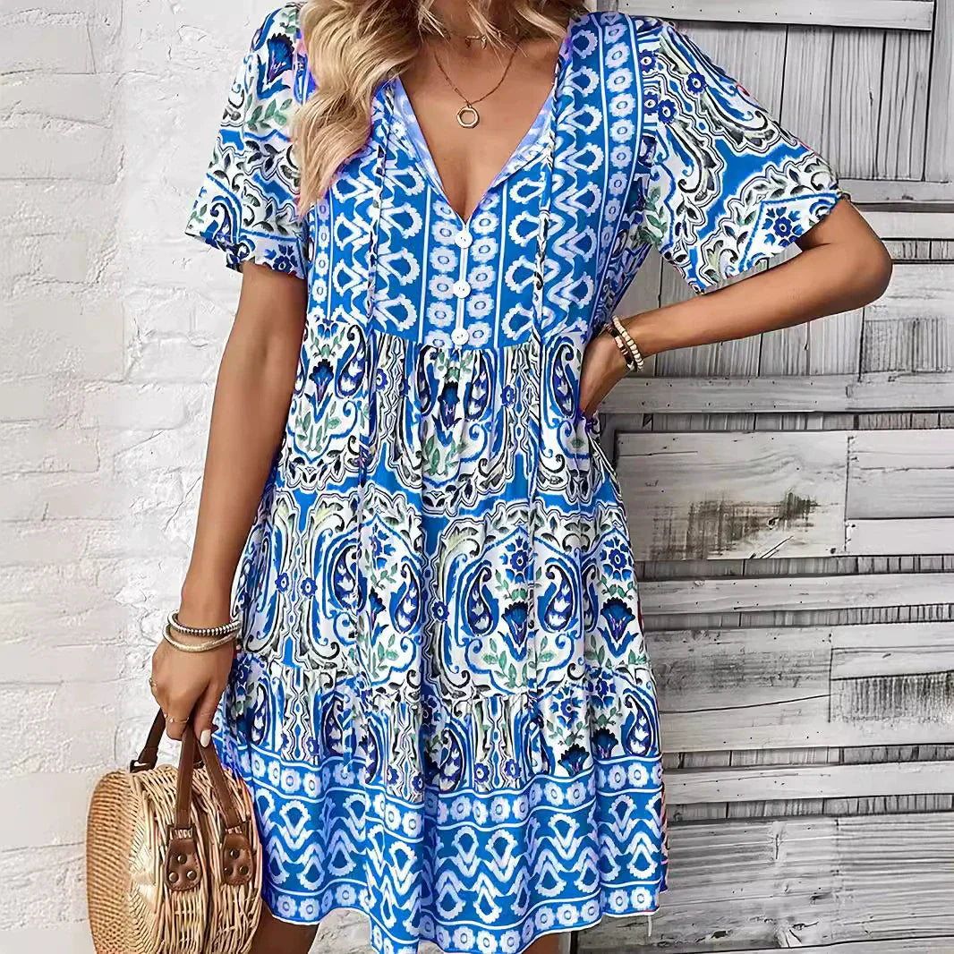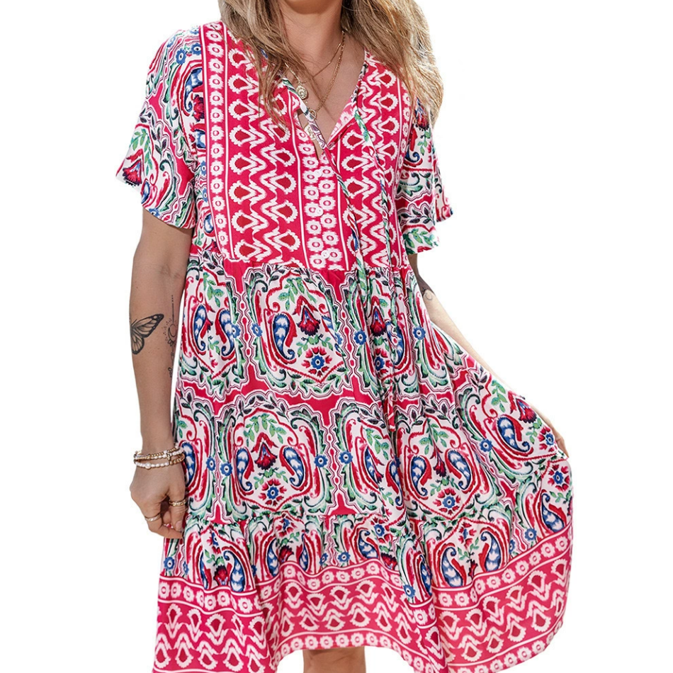 Glamour boem cu decolteu în V - Un decolteu în V adânc, cochet și împodobit cu bretele echilibrează seducția cu modestia. Curelele încrucișate reglabile vă permit să personalizați potrivirea pentru mărimile S-XL, în timp ce mânecile scurte ușoare adaugă un aer vintage purtării la piața de vechituri sau la cafenea.
