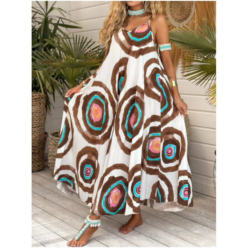 Stil boem relaxat - Această rochie este plină de vibrații de spirit liber, cu un imprimeu de artă boemă care aduce glamour relaxat și interes vizual. Perfectă pentru ieșirile la plajă, escapadele de weekend sau purtarea casuală de zi cu zi, modelul unic al acestei rochii adaugă caracter și fler garderobei tale de vară, fără a diminua aspectul tău natural.