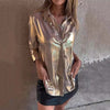 Pachetul include: 1 * Cămașă cu buton din piele metalică lucioasă pentru femei