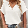 🌸 Top confortabil și șic pentru femei, cu decolteu în V, mâneci scurte, nasturi decorativi, croială lejeră și culoare unică. Acest tricou tricotat este ideal pentru vară, toamnă și primăvară – moale, respirabil și ușor de purtat.