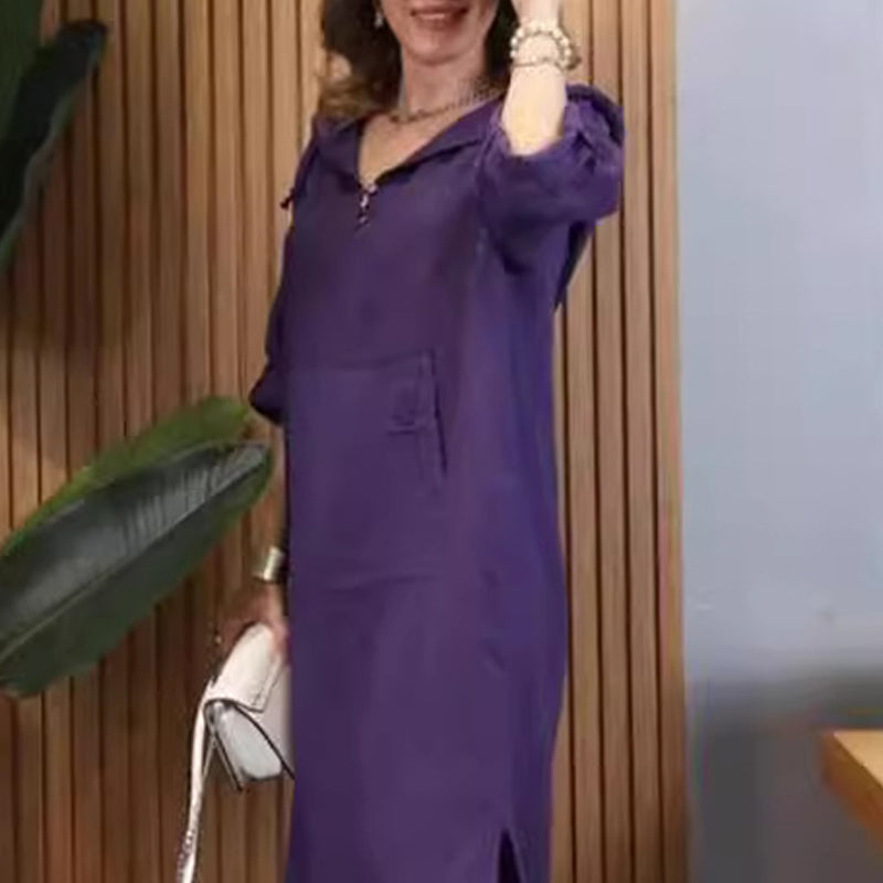 Pachetul include: 1 * Rochie maxi cu glugă cu mânecă lungă și fantă de culoare solidă pentru femei