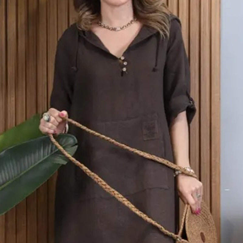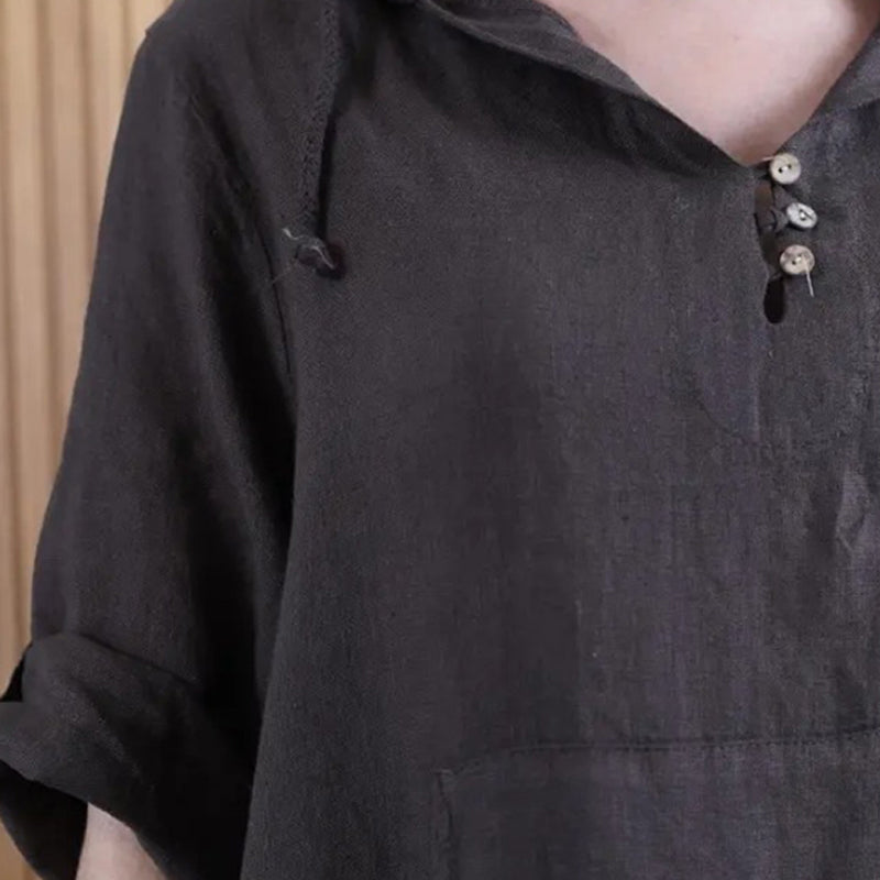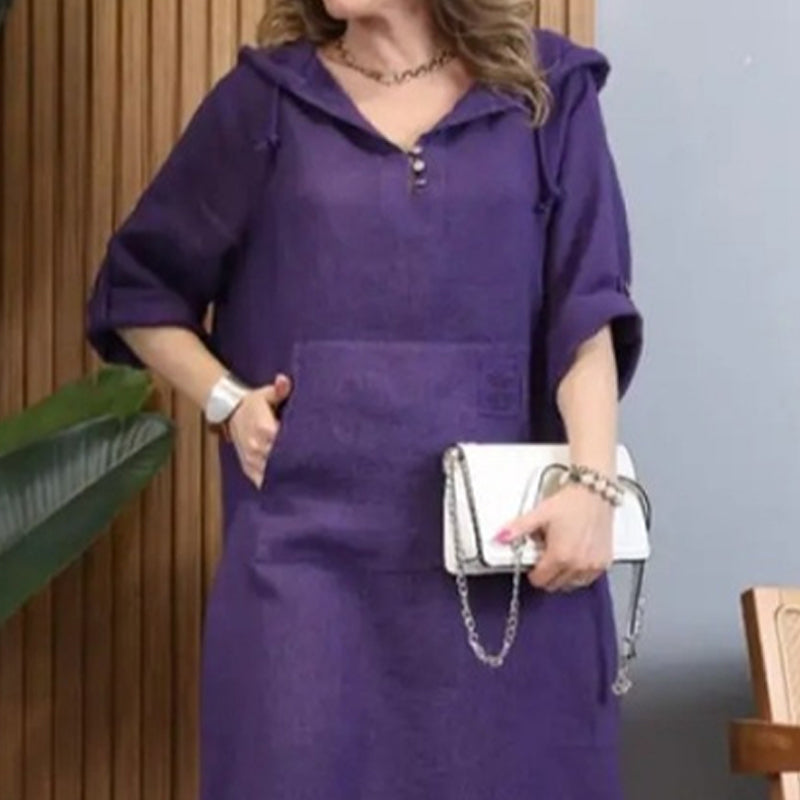 Glugă versatilă: O glugă elegantă cu cordon reglabil și un design flatant cu decolteu în V combină confortul casual cu stilul modern, relaxat.